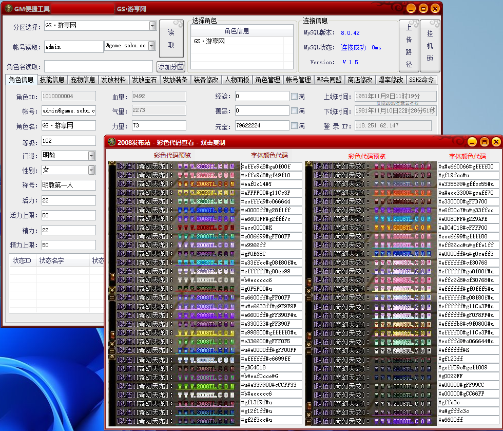 • 其他功能:有彩色代码查看功能,方便设置游戏内文字颜色;能生成自定义 CDK(兑换码);还可进行商店修改、爆率修改等操作,助力游戏运营和管理。