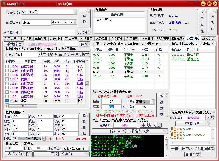 • 爆率修改:能对怪物的爆率进行设置,修改怪物属性,给怪物增加掉落包裹等,以调整游戏内物品掉落概率。