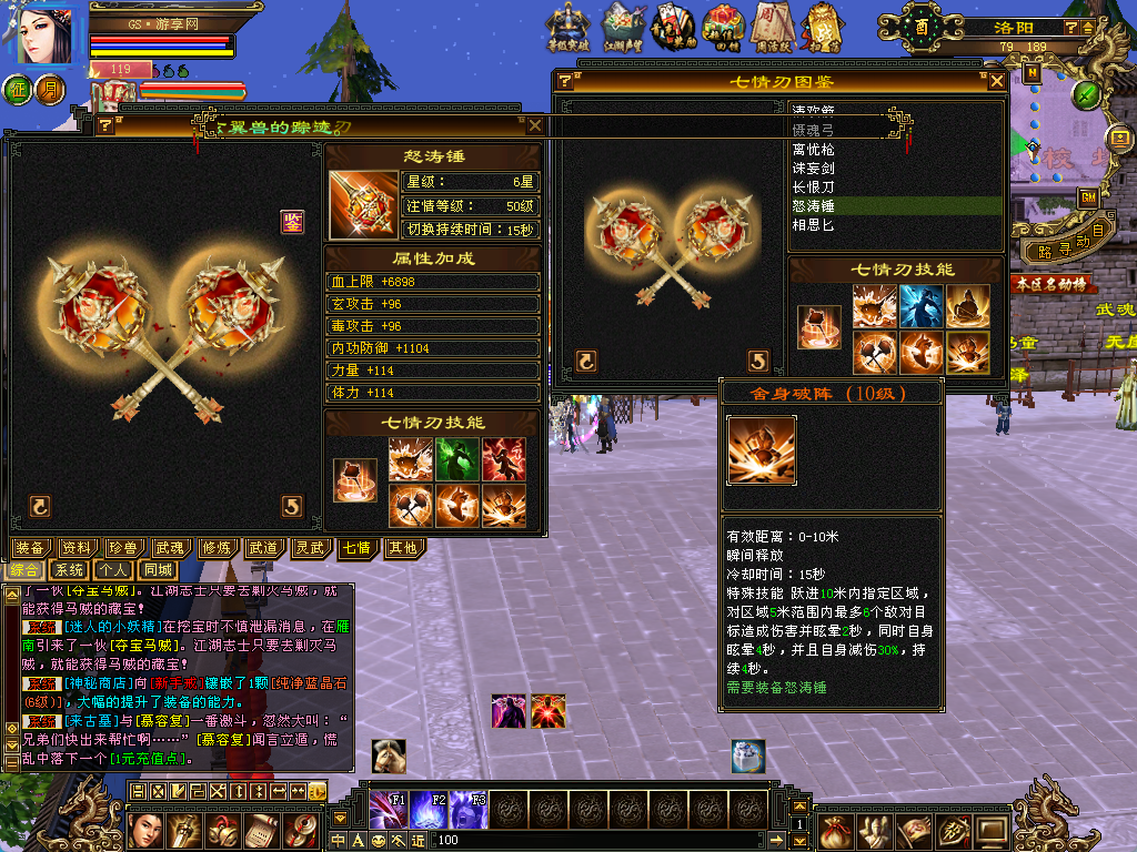- 宝石,强化,兽魂,武魂,修炼,雕纹,七情刃,帮会,门派转换
