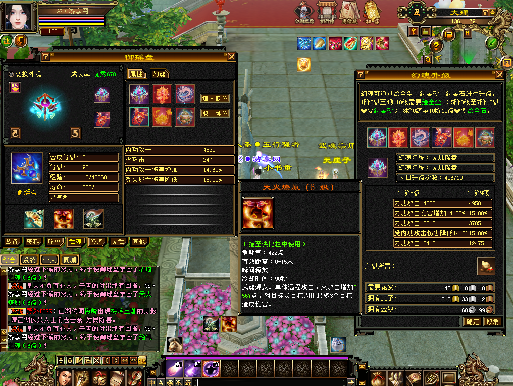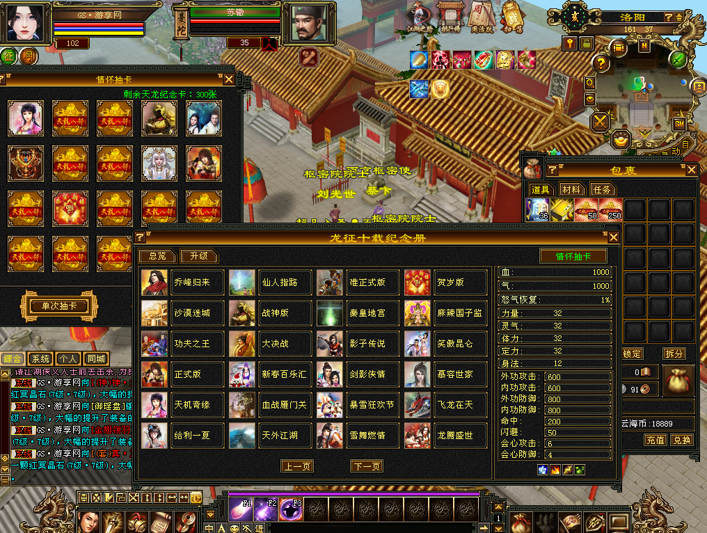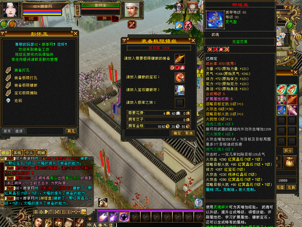 🔥功能打造🔥:宝石工匠,强化资质,美容美发,染色点缀,附体幻饰,冰魄神针,暗器打造,武魂功能,神器炼魂,重楼兑换,修炼境界,雕纹系统